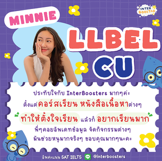"Interboosters เป็นที่แรกที่หนูเรียน SAT แล้วก็ไม่ผิดหวังเลย ไม่เคยเจอหนังสือเรียนที่ไหนน่าเรียนขนาดนี้ หนูประทับใจทริคและเพลงที่พี่มิ้นแต่ง มันติดหูแล้วเอาไปใช้ได้จริง"